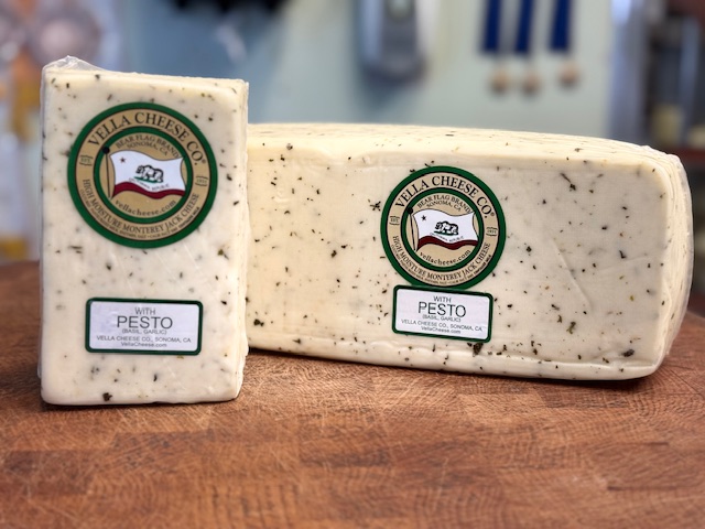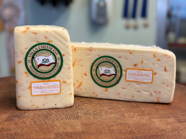 This cheese was originally created in the gold rush days in Monterey, California by a Scotsman named David Jacks, whose name it carries today. Our version is aged a minimum of one month and there is no richer or more delicious Monterey Jack cheese anywhere. It's buttery, creamy texture and taste leaves a clean fresh flavor in your mouth. When cold it slices and grates well for cooking, while at room temperature it becomes almost spreadable. It is available unflavored (Original) or naturally seasoned with Pesto, Garlic, Rosemary, Jalapeno,or Habanero. You can order any of our High Moisture Monterey Jack Cheeses year round in block form. We offer a hand rolled wheel version of all flavors available only during the month of December, while supplies last.